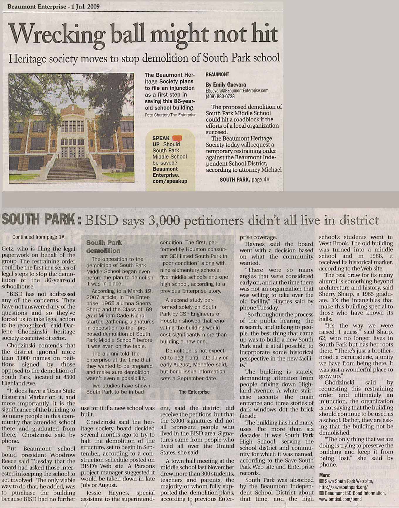 South Park is one of 10 Beaumont schools slated to receive a new campus as part of the $388.6 million bond package passed last November.