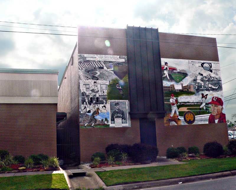 Stuart Stadium was home to a Texas League team from the 1920's through the early 1950's. The ballpark was razed in 1955. A shopping center now stands on the location. Fortunately, there is a reminder of the old ballpark. On the exterior of the bank, facing Avenue A, is a large mural describing Stuart Stadium and the history of baseball in Beaumont. It is quite a nice piece of artwork and sure beats just an historical marker.