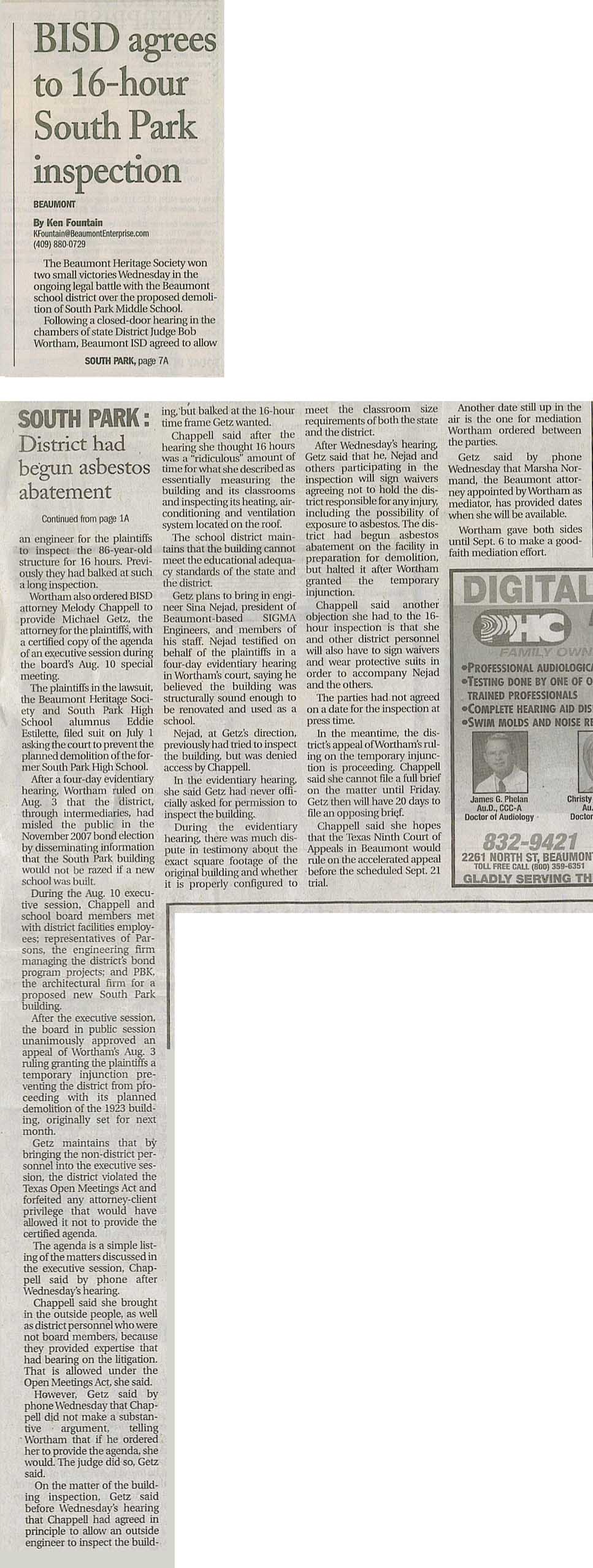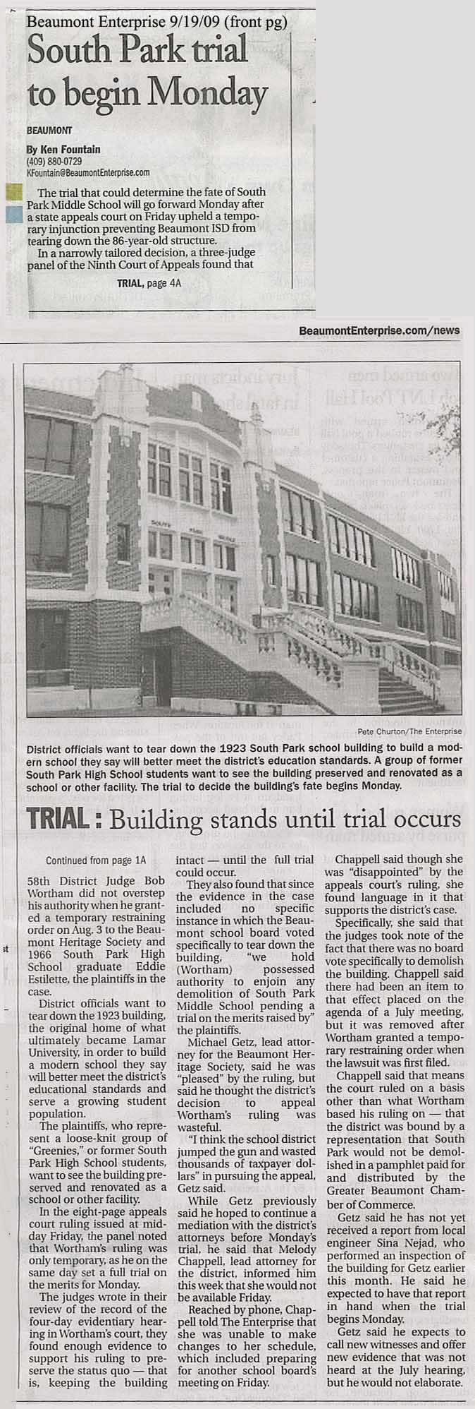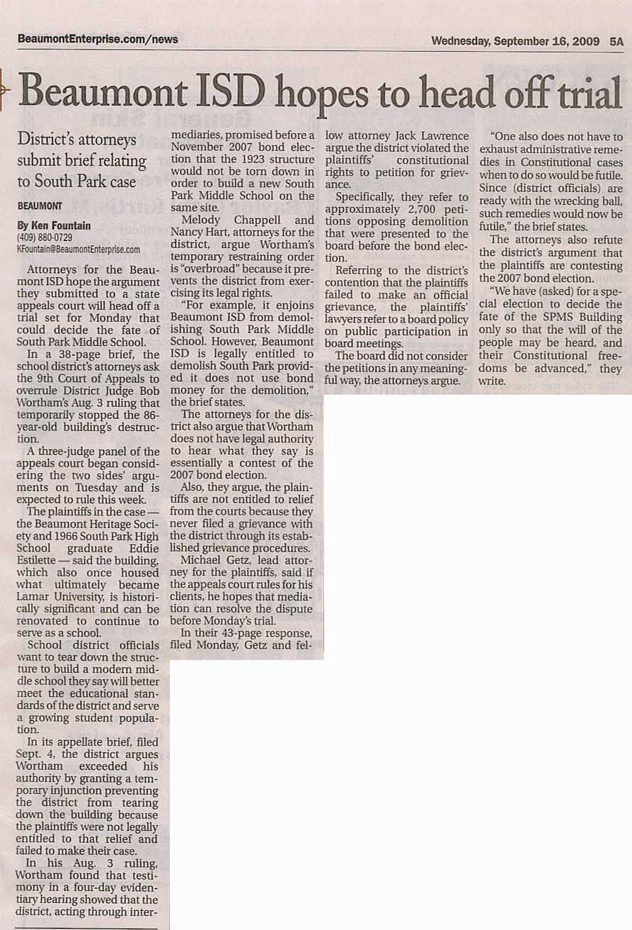 Beaumont Enterprise Page 1 -- click for full article
